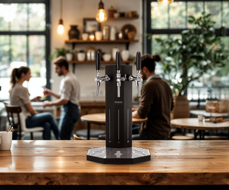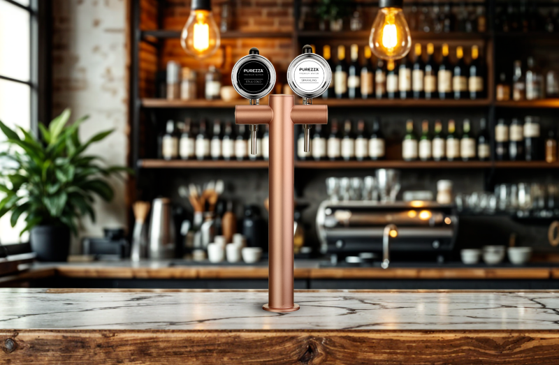 Elegantne navrhnutý Frizzante 80 s integrovanou UV LED technológiou a mechanickými kohútikmi je robustný a spoľahlivý výdajník poskytujúci veľké objemy chladenej, izbovej a perlivej filtrovanej vody.